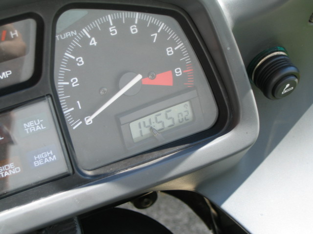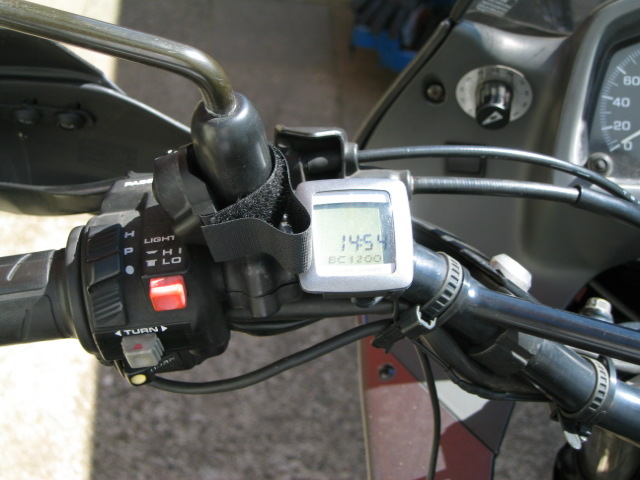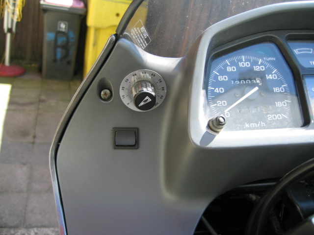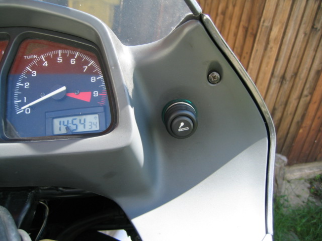 Ins Cockpit habe ich eine Funkuhr von Conrad eingebaut. Dazu wurde vom Tourenzähler unten rechts eine Ecke ausgesägt und die Uhr eingepasst. Dies hat den Vorteil dass die Uhr nicht gestohlen wird, trocken sitzt und sich selbständig auf Sommer und Winterzeit einstellt. Nachteil ist, dass man bei längerer Sonneneinstrahlung auf dem Display nix mehr sieht. Eine kleine LED bringt hier Licht ins Dunkel der Nacht.