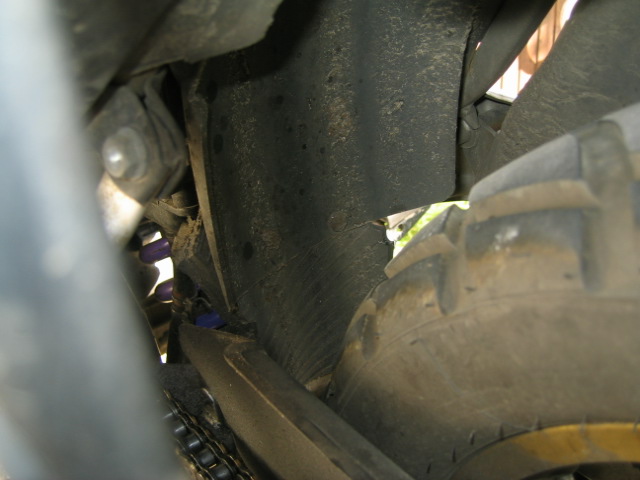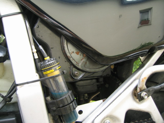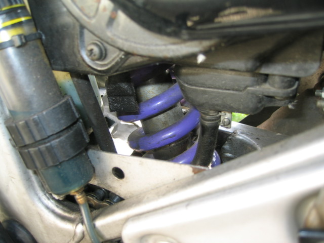 Um übermässige Korrosion des Federbeins zu verhindern, hab ich ein Stück Autoreifen als Spritzschutz angebracht.