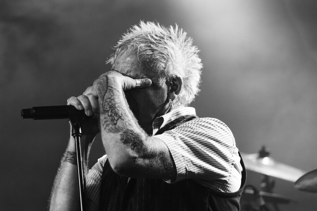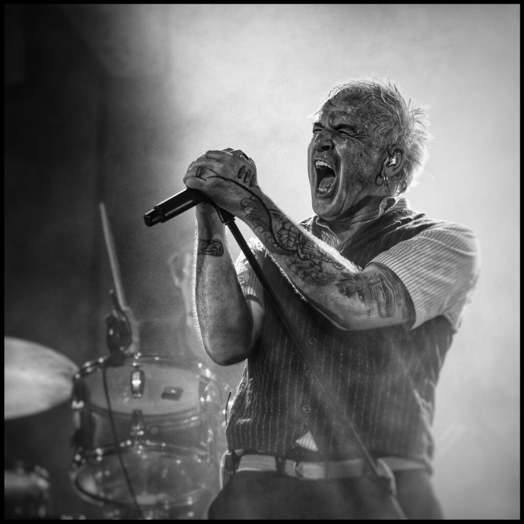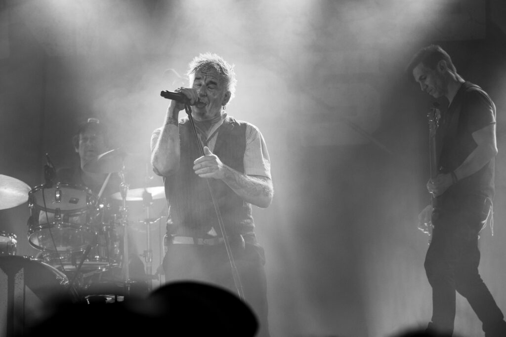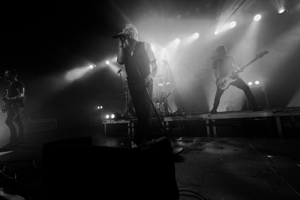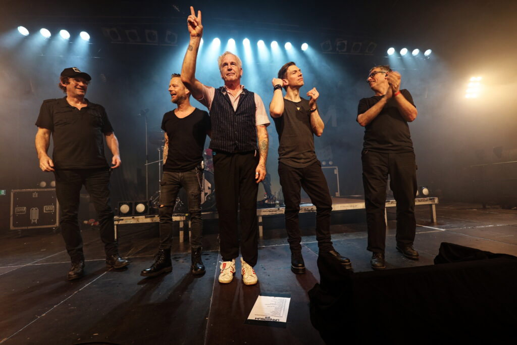 Michael Robert Rhein überzeugte mit charismatischer Präsenz, während Rupert Keplingers elektronische Elemente den Songs eine beklemmende Tiefe verliehen. Pat Prziwara und Gunnar Schroeder sorgten für die nötige Punk-Attitüde, roh und direkt. Alex Schwers trieb das Set mit präziser, druckvoller Energie voran.